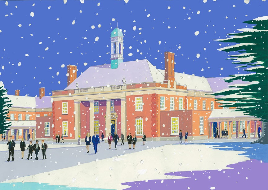 Ashlyns schoool, Berkhamsted in the snow. This shows the headmaster Mr Shapland, staff and pupils perhaps off to morning chapel.