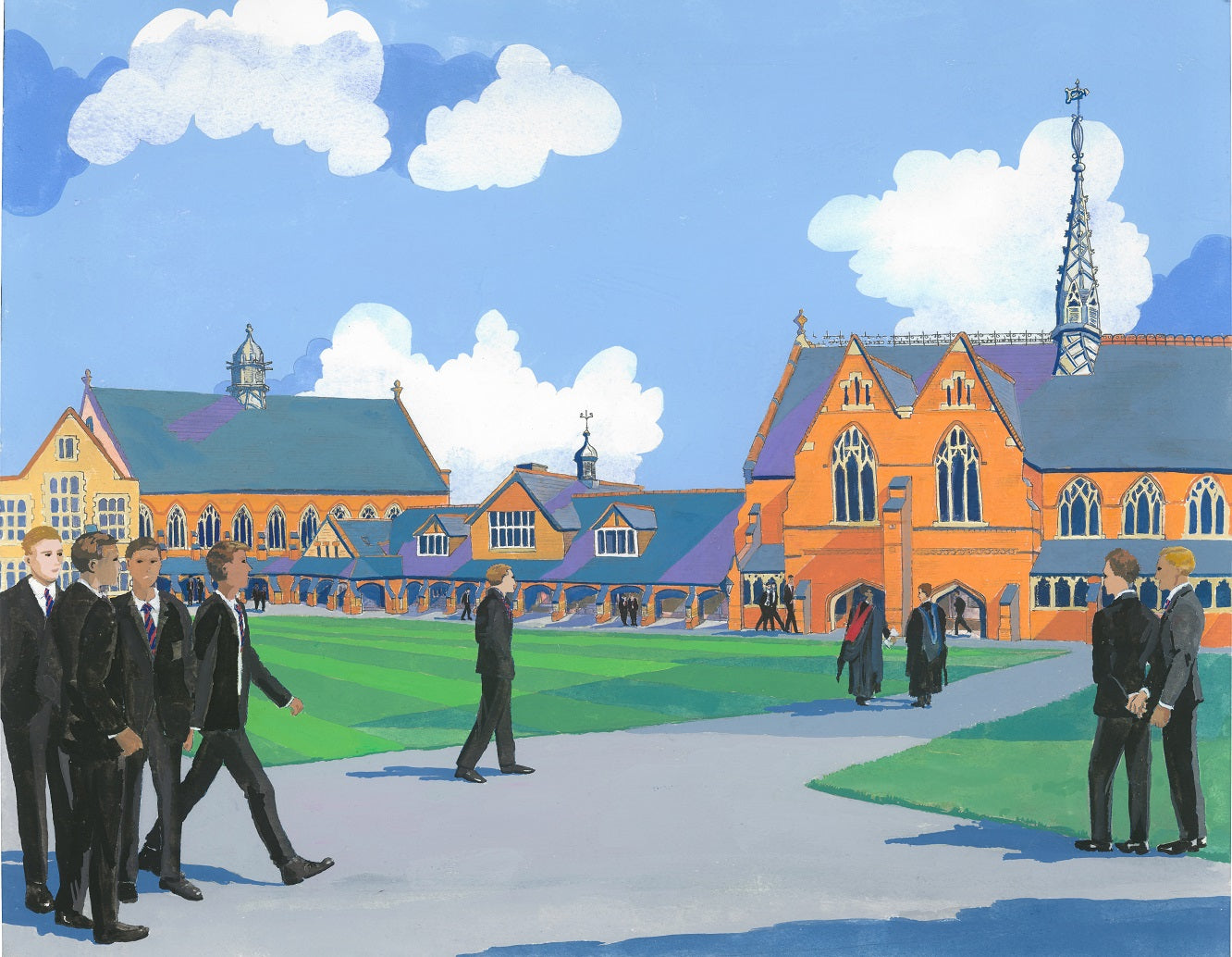 Berkhamsted School was founded in 1541 by John Incent. This picture shows the Quad of Castle Campus in Castle St with the Deans' Hall, and the Chapel in the background. I worked at the school for almost 20 years (in the art dept.) so I have a lot of love for it.