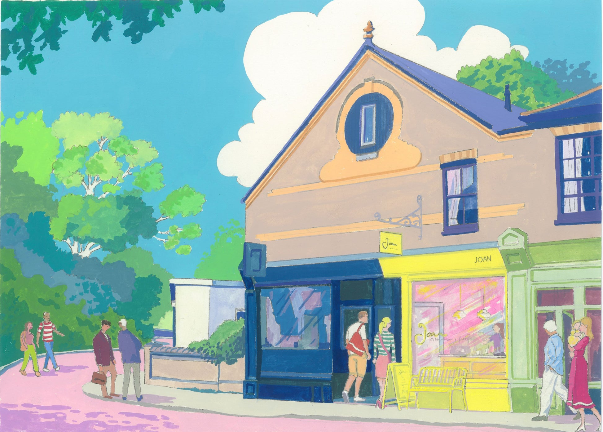 My painting shows the former Meek's Livery stable buildings, now smart shops and cafes including the vibrant buttercup yellow "Joan" coffee shop!