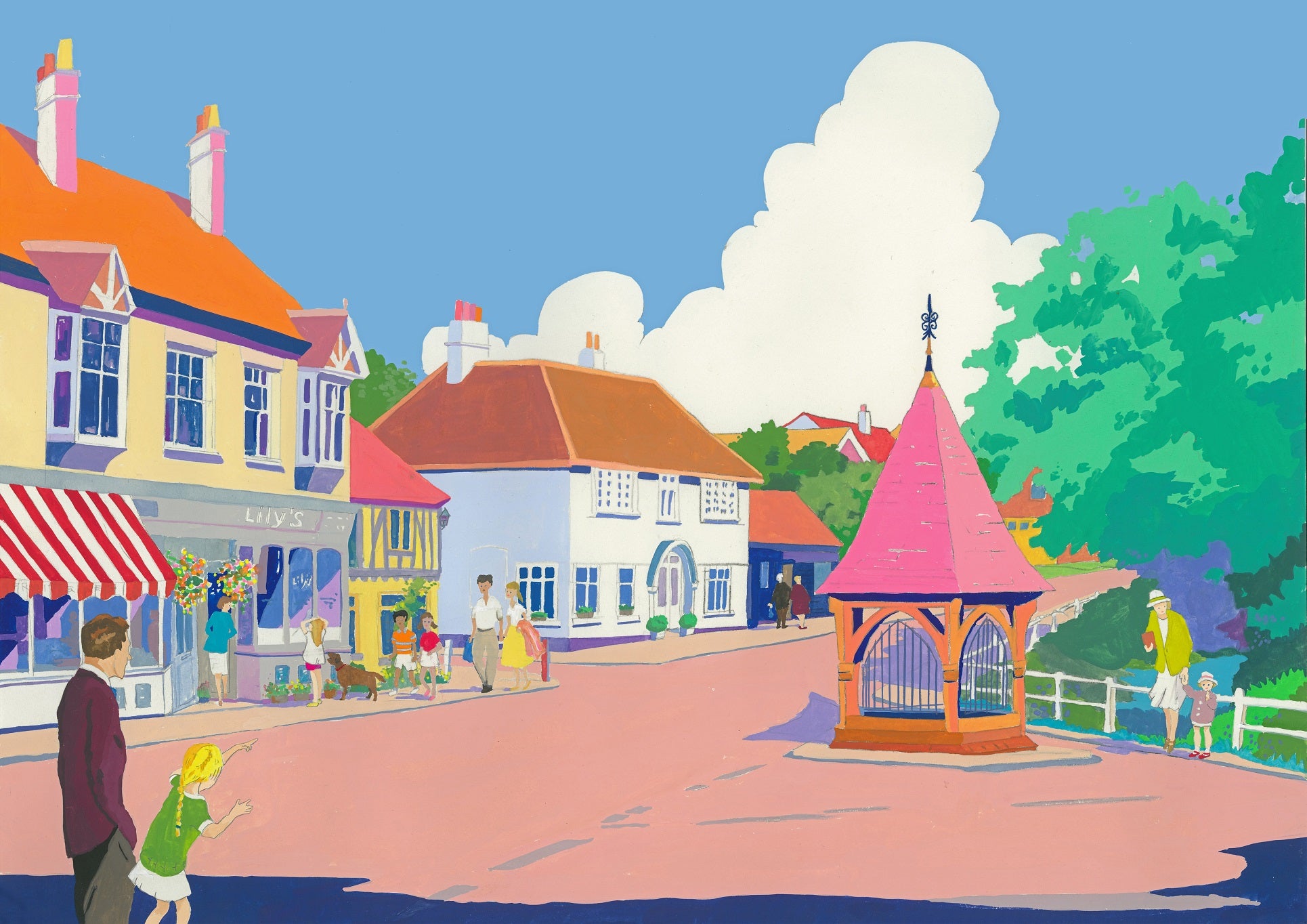 Bovingdon High Street showing the Ryder Memorial Well.