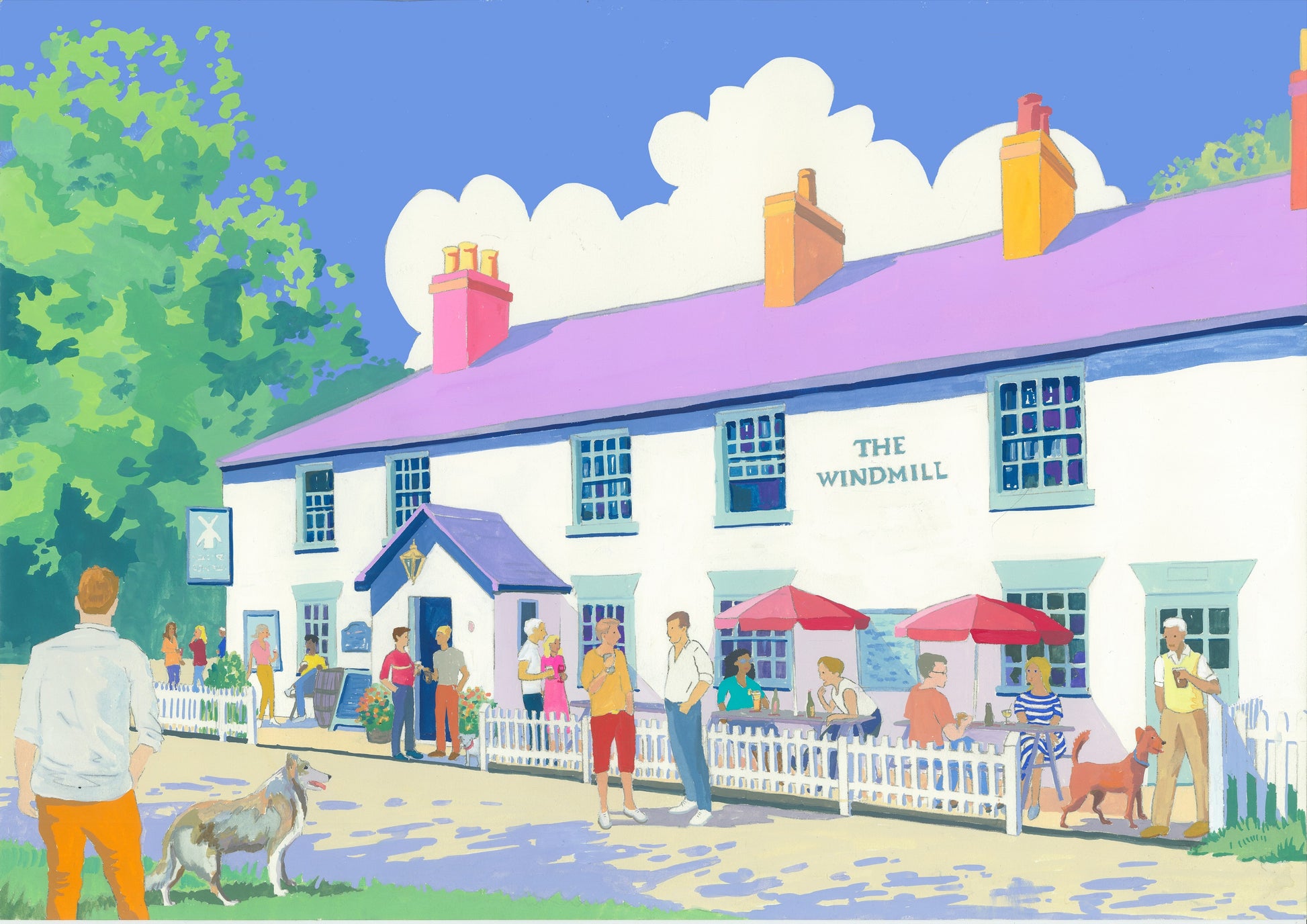 Built around 1725, this country pub once served time as the alehouse for the employees of the nearby smock windmill which is now no more. Since those days it has absorbed three adjacent cottages. Listed as a beerhouse in 1838 owned by Willian Tyres and kept by George Evilthrift.