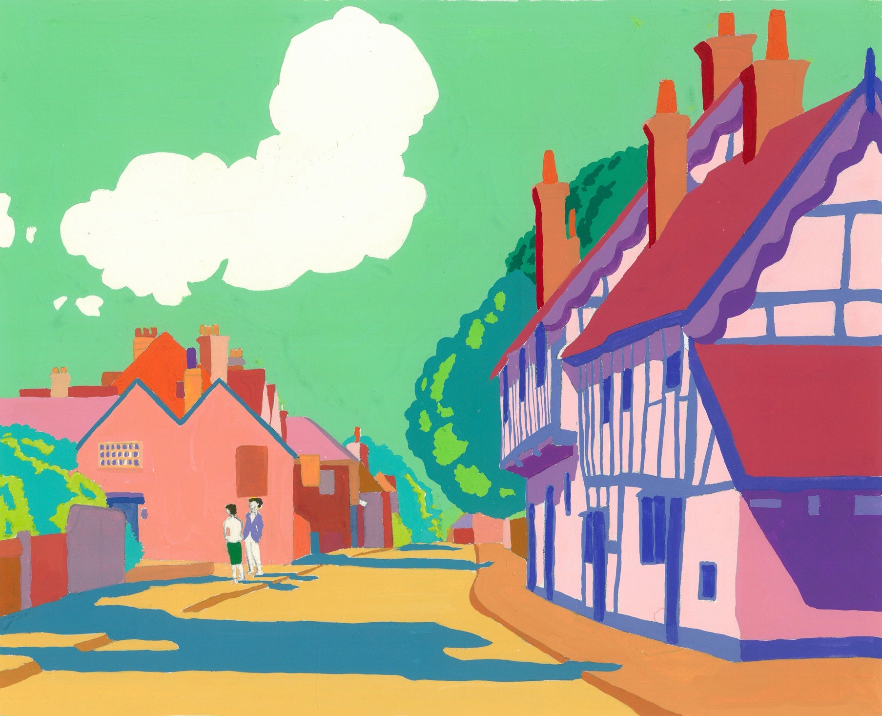 Northchurch showing the historic 16th c. Almshouses to the right and on the LHS The George and Dragon pub. The figures represent my friend and local historian "Hedgehog" and his late wife, a well-known Northchurch born resident.