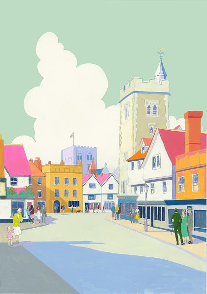 The centre of Medieval St Albans was the Clock Tower built around 1403-12. Near the Clock Tower stood the Eleanor Cross, pulled down and replaced with a Market House. This in turn was replaced by a water fountain in 1894, this too has now gone! The Clock tower medieval bells were rung at 4am to summon apprentices to work, and again at 8pm to close the market and shops.