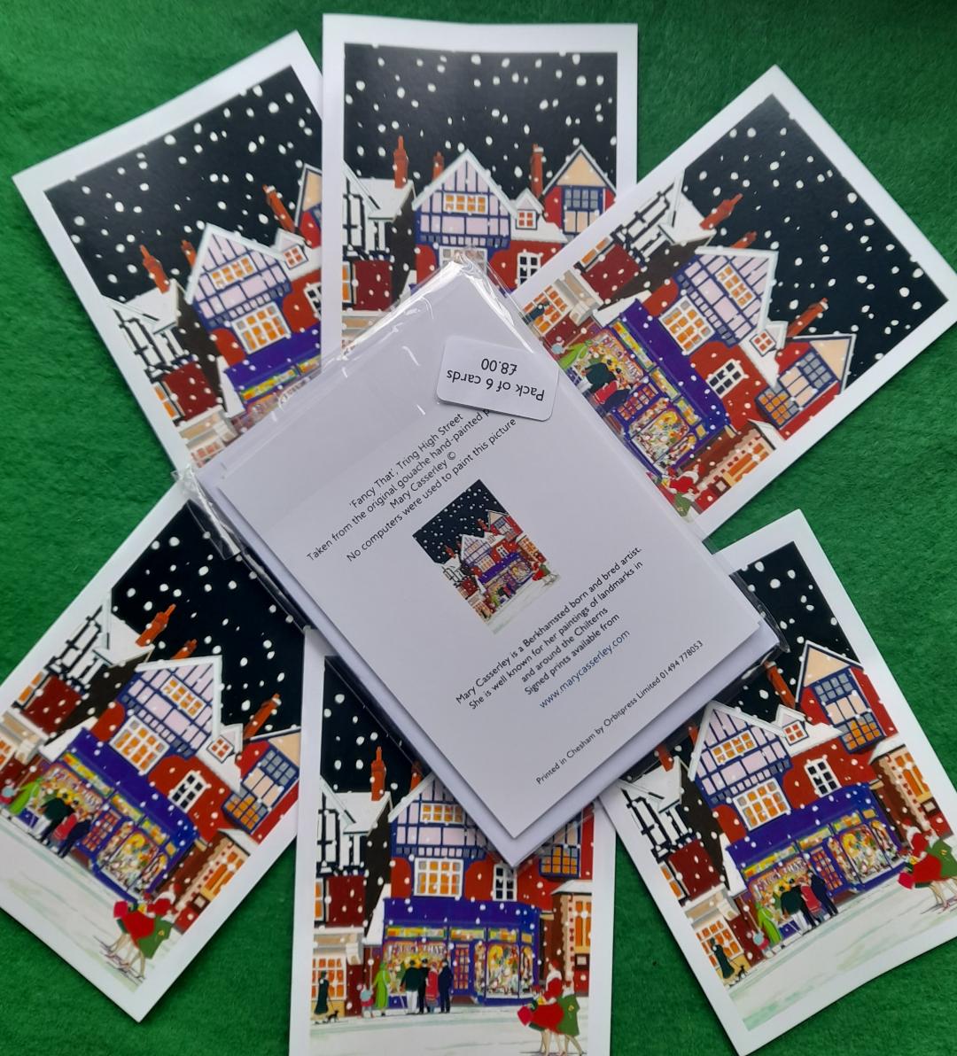 Mini pack of six A6 cards of Tring Fancy That. Inside this eclectic and wonderous shop Sam and Jonathan will serve you with a flourish and gift wrap at no extra charge. Fancy That have been stocking my Tring and local villages cards for 10 years.