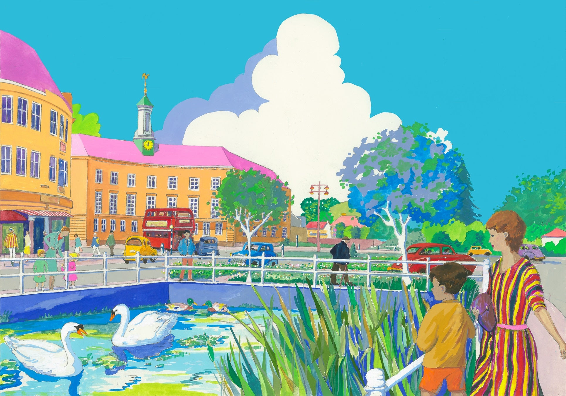 The Town Hall with its distinctive Turret was built on the site of 'The Elms', a handsome early eighteenth century house in 1938/9. The architect was C.Cowles Voysey.