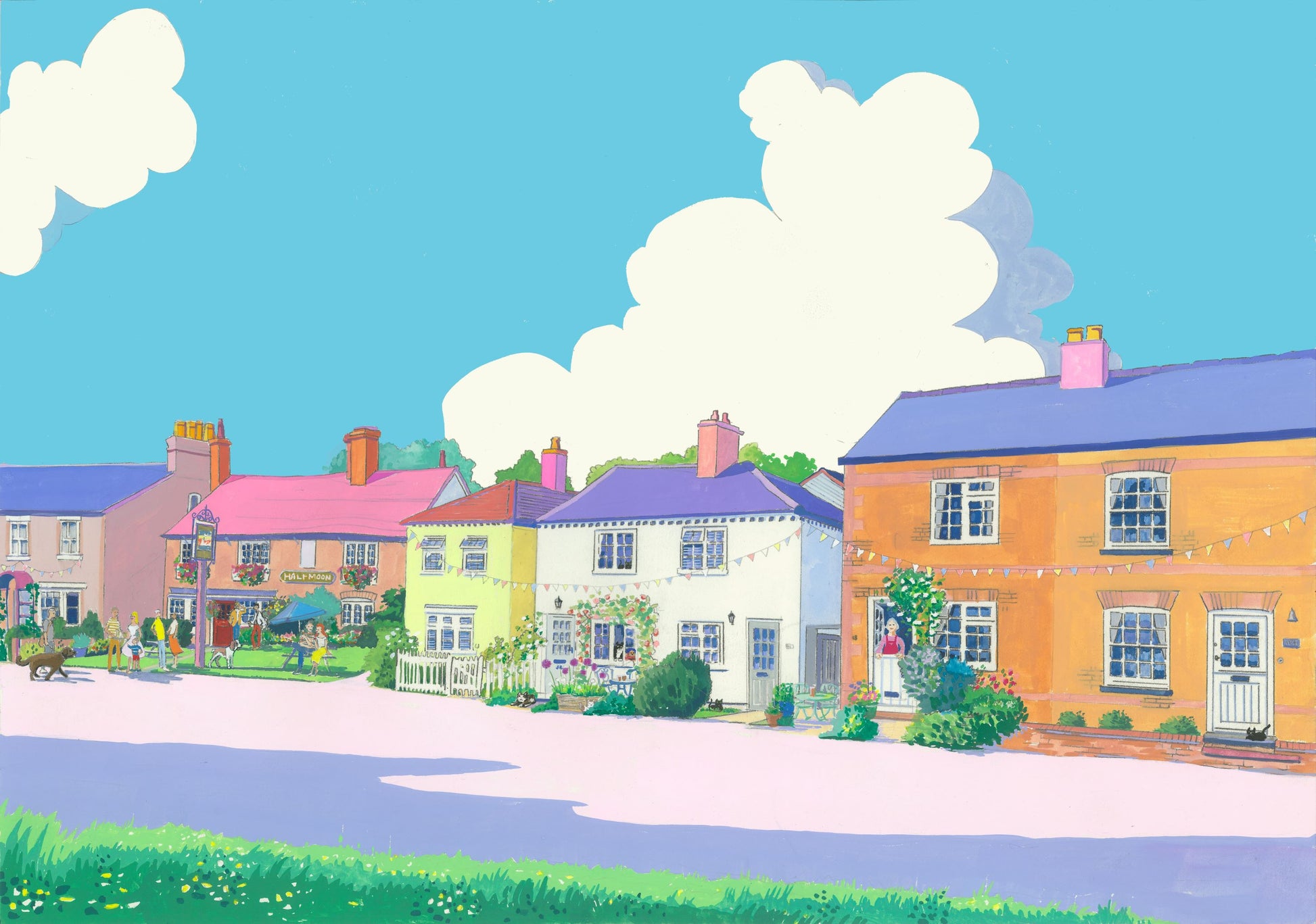 Wilstone village showing the Half Moon pub and a few locals! Cards/signed prints are for sale in the village shop