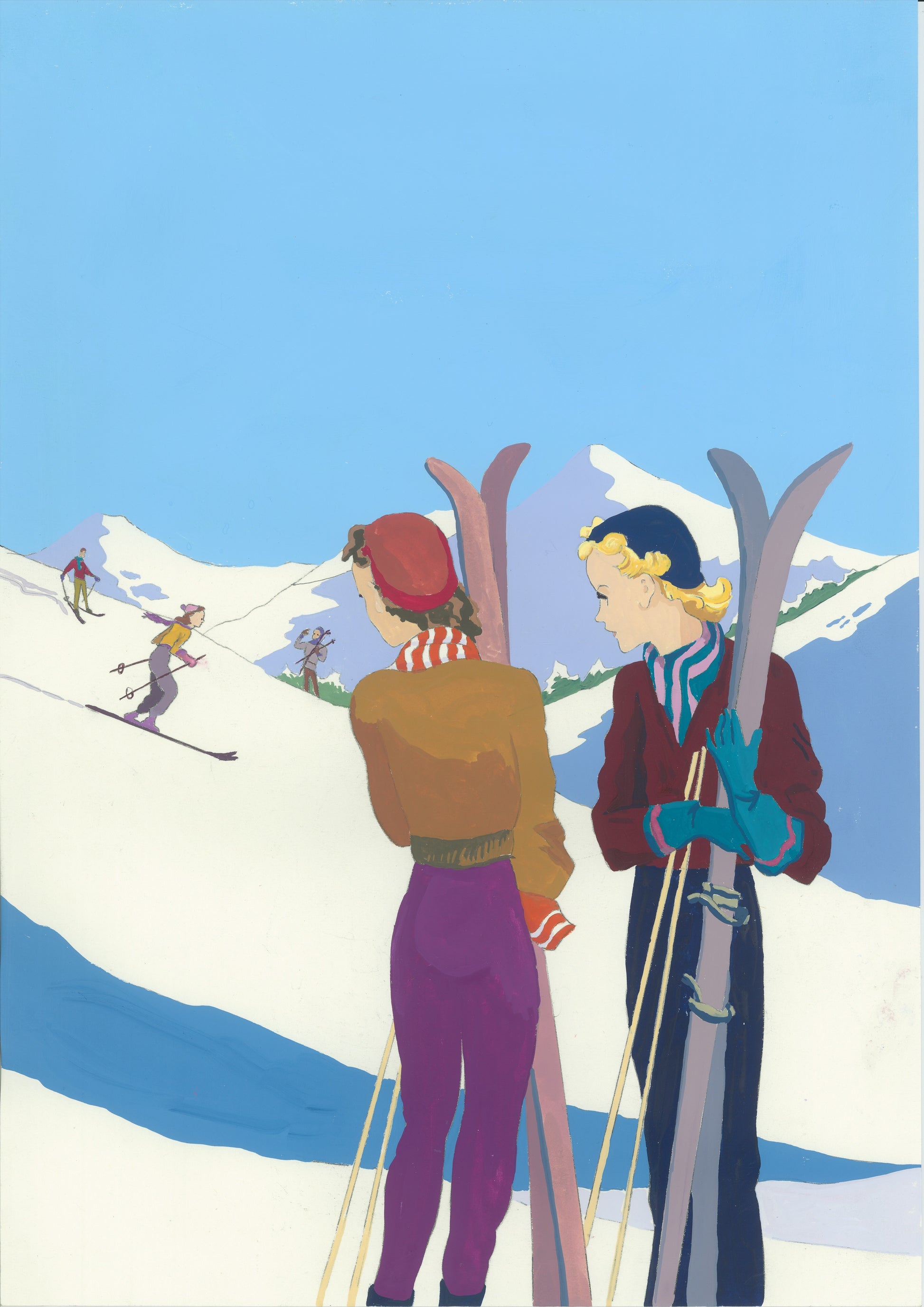 Ever since I went skiing in the Alps in the 1990s I've wanted to paint my own ski poster. I can customise this with text of your choice/colour e.g "AVIEMORE", "WINTER SKIING" " THE ALPS" "SWITZERLAND" " COLORADO" etc.